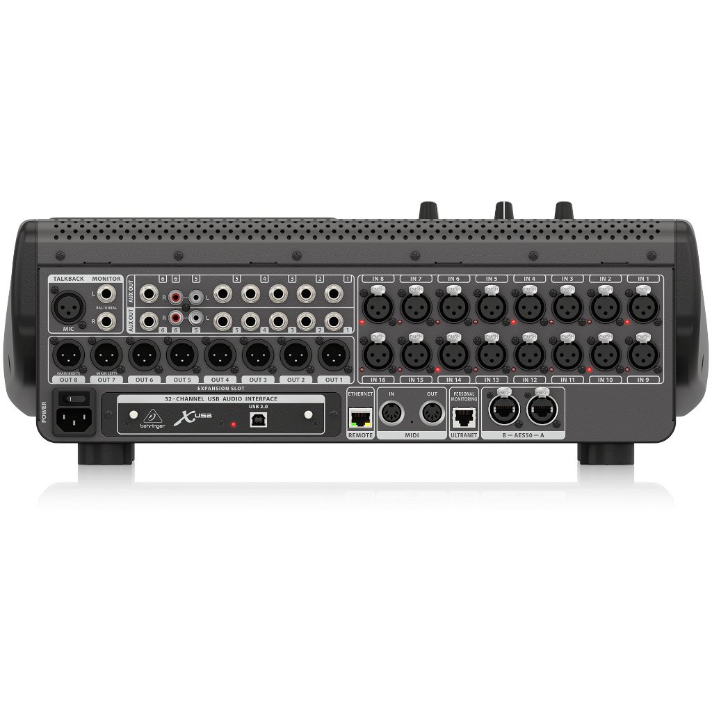 - Ultranet connectivity for optional Behringer P16 series personal monitoring systems